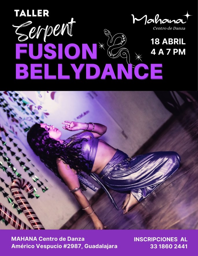 En este taller trabajaremos movimientos inspirados en la serpiente que integran bellydance, estilo Fusion y tribal clásico, despertando la conexión con la energía creativa y la presencia corporal.